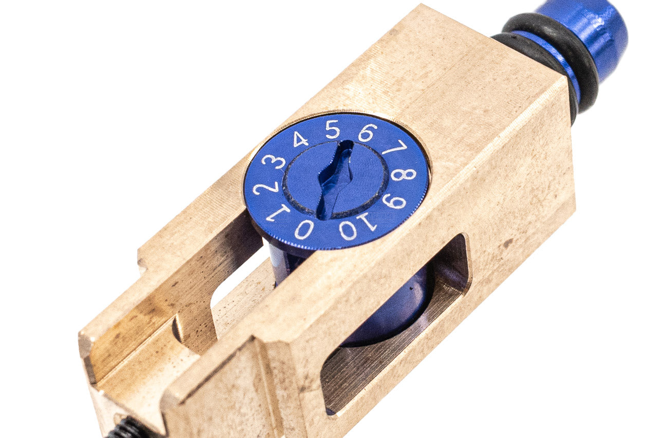 The C&C BlueBrass Hop Up System for the Marui TM MWS GBB series, featuring a high-quality chamber base and adjuster set made from CNC machined brass and aluminum. This upgrade enhances accuracy and performance, allowing for precise hop-up adjustments. The durable materials ensure longevity and reliability in various airsoft shooting conditions.