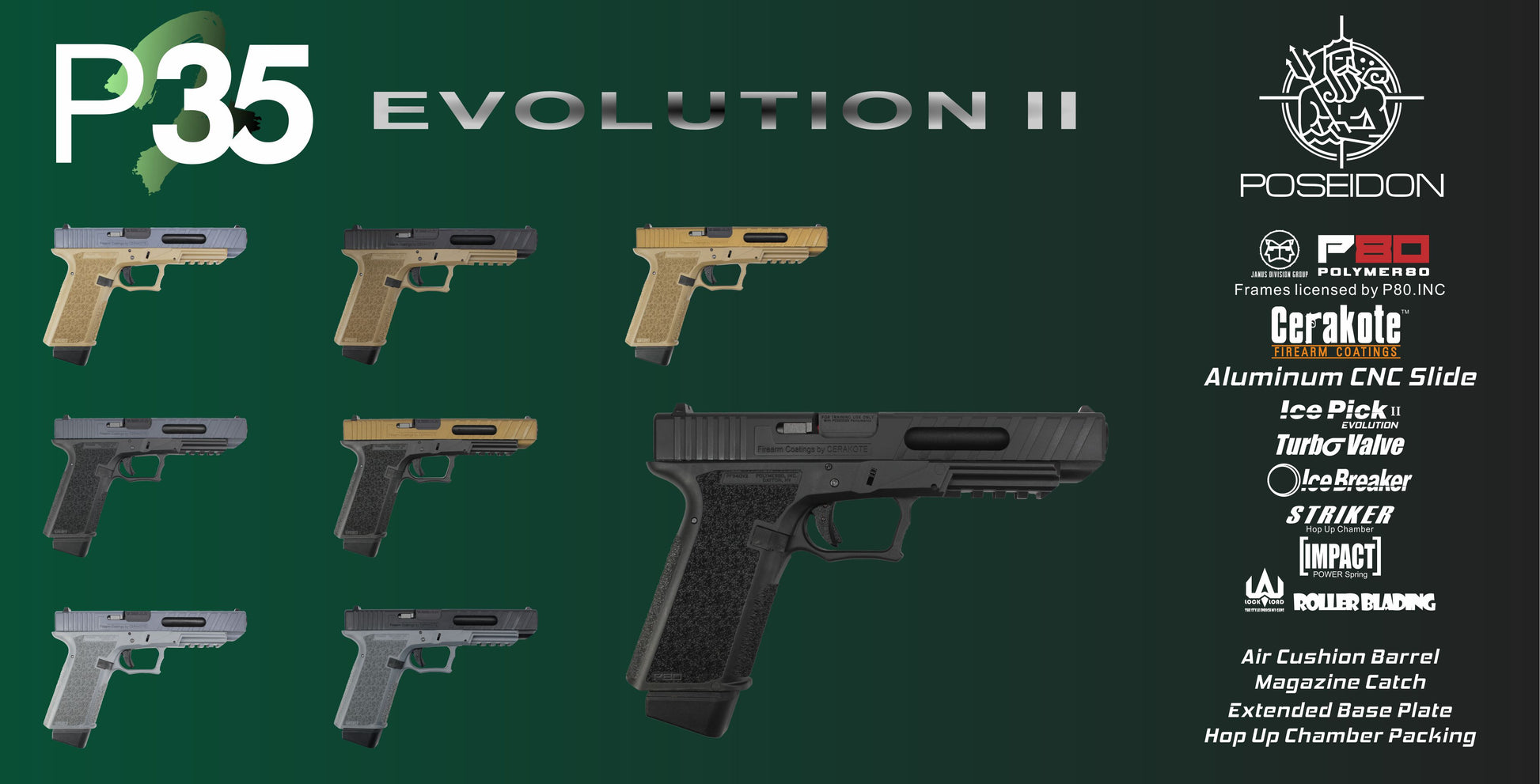 Poseidon P35 EVO 2 Airsoft GBB Pistol ( JDG Polymer80 Licensed P80 PF940V2 Airsoft Frame ) ( Cerakote Slide )