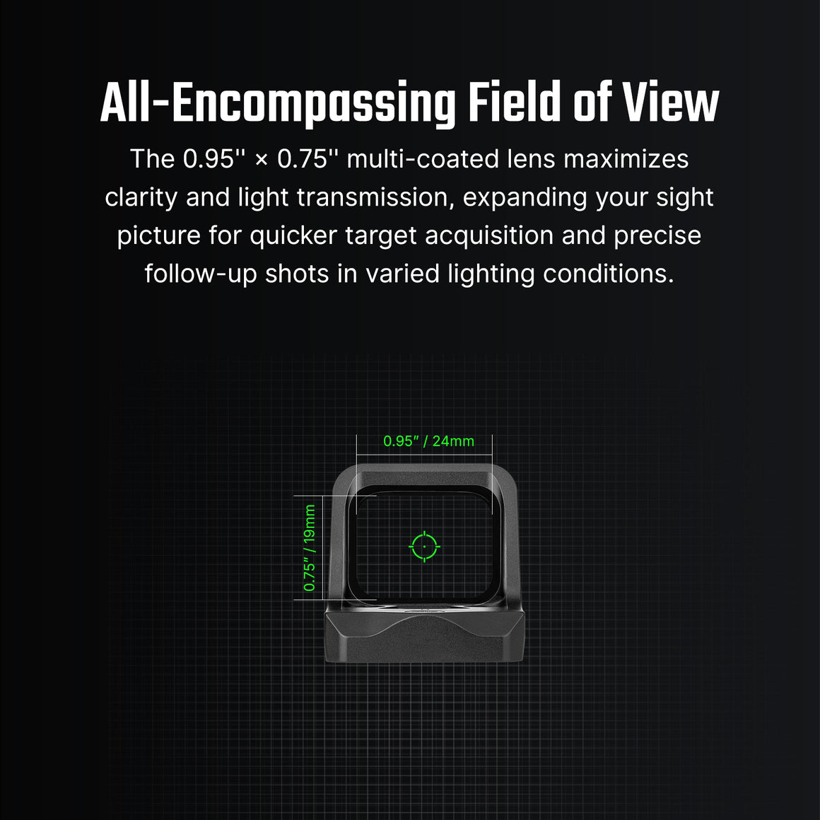 • Large Field of View with Multi-Coated Lens: Engineered with advanced anti-reflective lens coatings, this sight maximizes light transmission for unmatched clarity, allowing you to quickly lock onto targets with pinpoint precision.