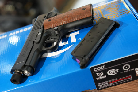 It is finished with wood-colored styled grips bearing the classic Colt logo for that original, authentic flavor.