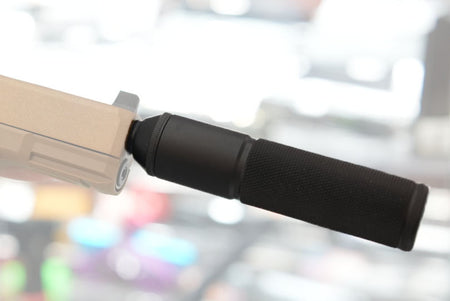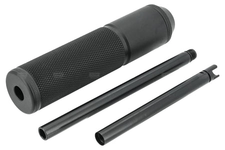 This kit provides a functional and aesthetic upgrade for airsoft G19X models. The unit consists of a robust aluminum dummy suppressor that conceals an extended inner barrel. This design allows for a longer barrel setup without compromising the replica's compact look. It is compatible with any outer barrel featuring 14mm CCW threading.
