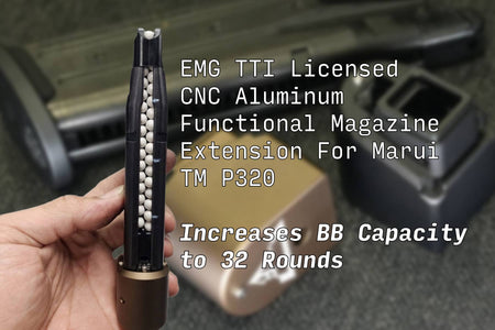 Home » EMG TTI Licensed CNC Aluminum Functional Magazine Extension For Marui TM P320 GBBP
