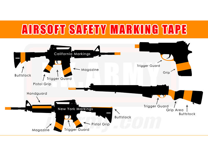 According to the US law, every Airsoft guns require bright orange plugs or other markers to be affixed to the end of the barrel. Airsoft guns are considered look-alike firearms which require the special blaze orange marking. Also, all real gun trademarks are required to be removed.