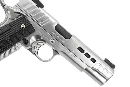 - Enhanced Grip: G10 Rapide styled patterned grips, combined with front strap stippling for maximum control.