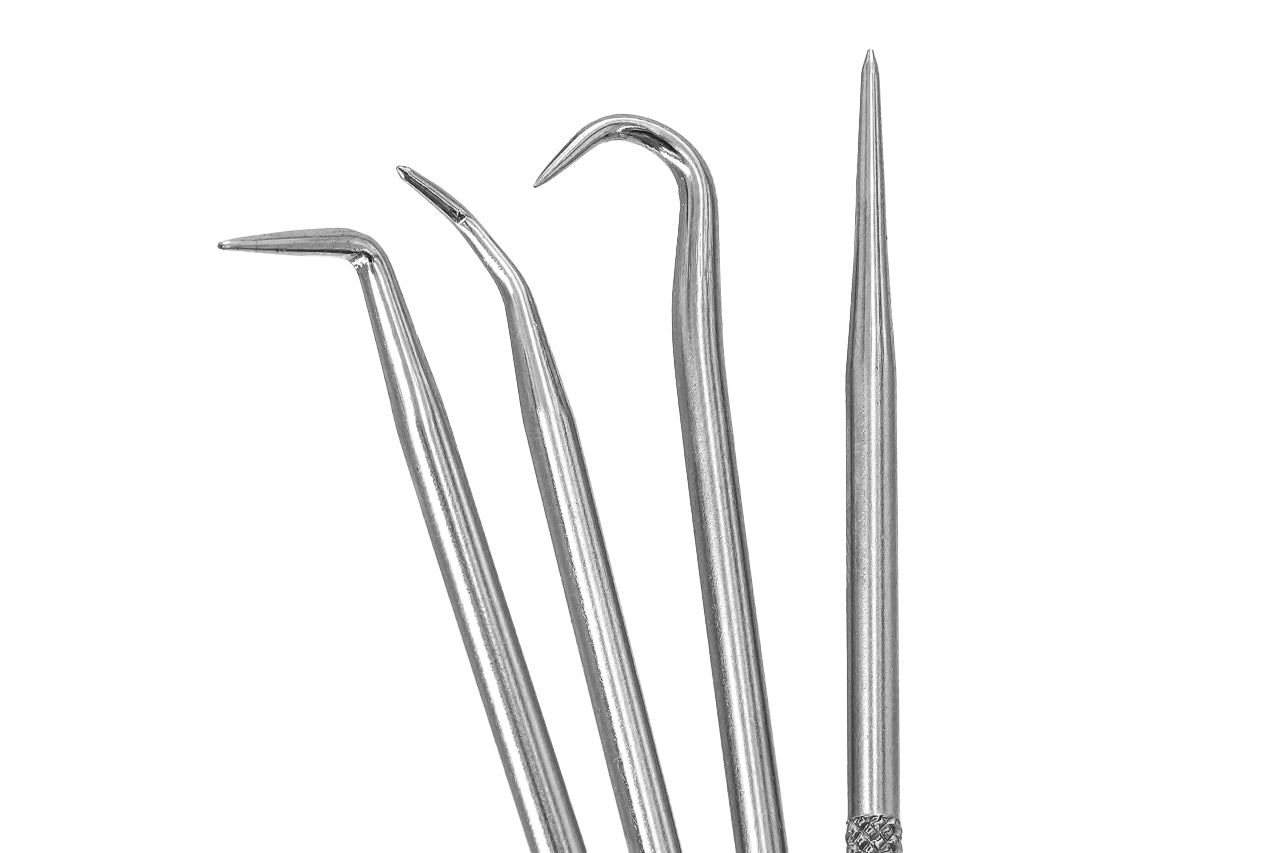- 4-Piece Interchangeable Pick Set ( Straight, 90°, O-Ring Hook, & Round Type )