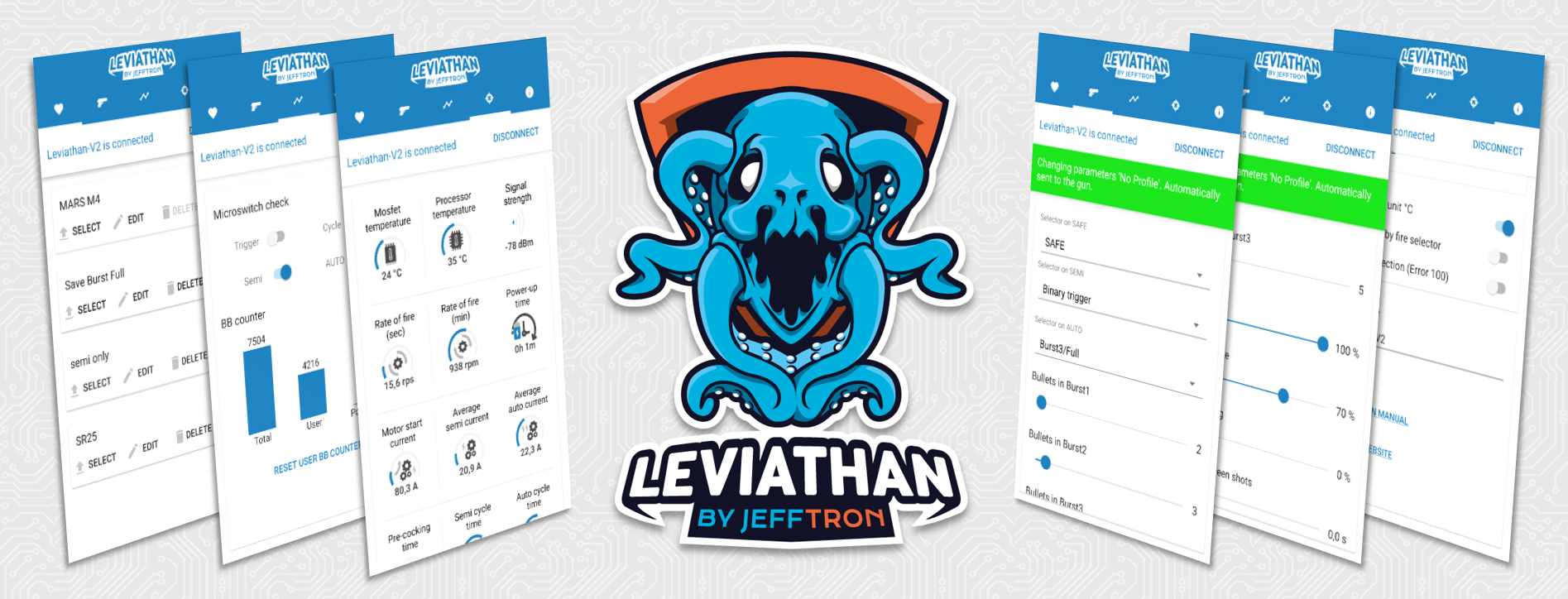 Leviathan - V2 is processor controlled mosfet with wireless communication. It adds new shooting modes, controls RoF, pre-cocking, active braking, low battery indication, statistics...