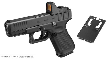 This model features the "MOS" (Modular Optics System), allowing for the installation of a dot sight. It faithfully reproduces the characteristics of the Model 19 Gen5, such as the modified front slide with added chamfering and serrations, the grip without a finger channel, and the ambidextrous slide stop.